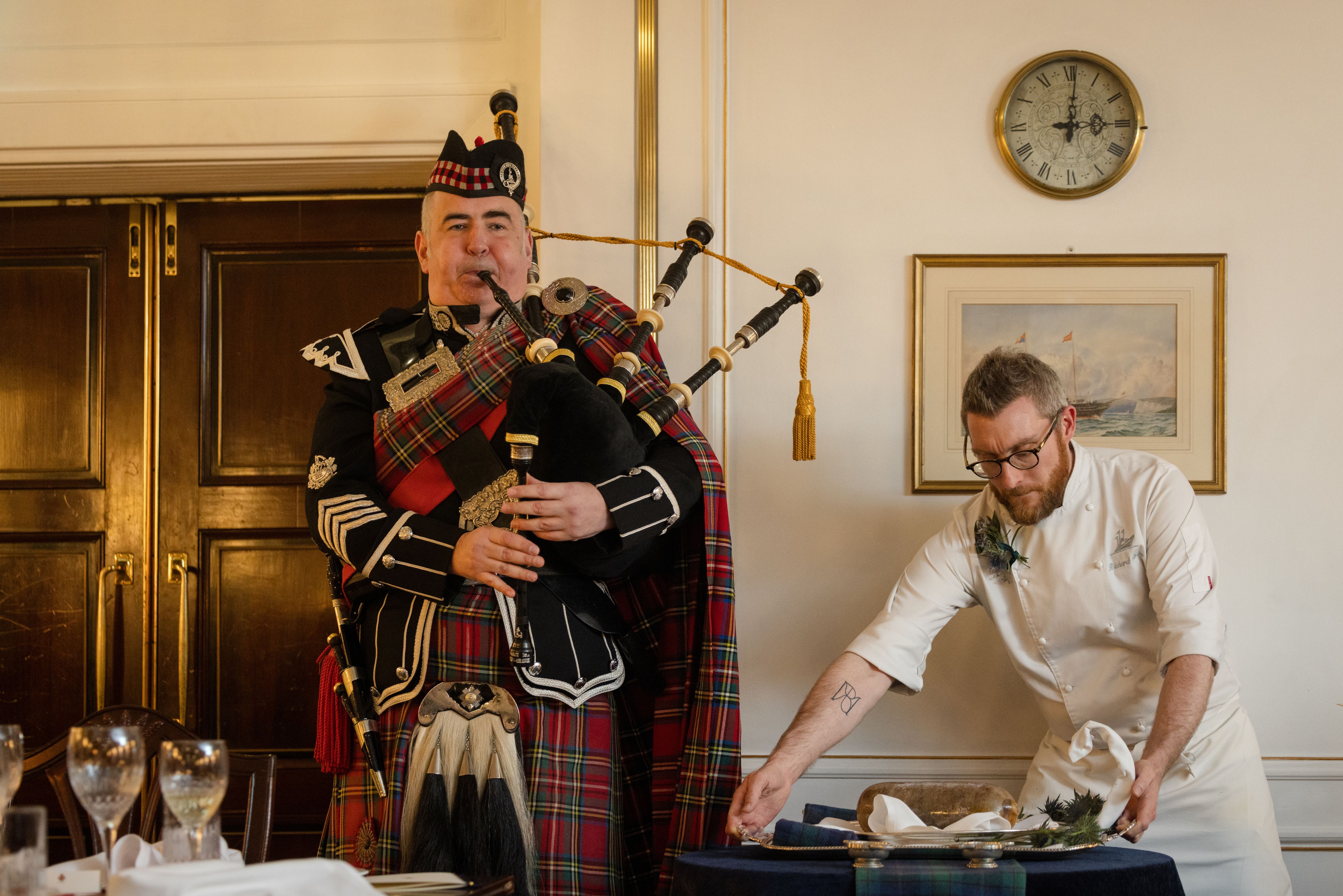 Our pianist will entertain you during the reception on Britannia's original baby grand piano, played by notable guests including Sir Noël Coward, Princess Margaret and Princess Diana. The highlight of the evening, the 'Address to a Haggis' will be toasted with a dram of whisky.