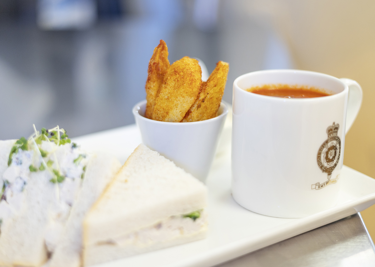 Enjoy lunch in the Tearoom during your tour. Try our Britannia Platter – your choice of soup and sandwich, served with twice-cooked smoked paprika potato wedges and a side of garlic mayonnaise.