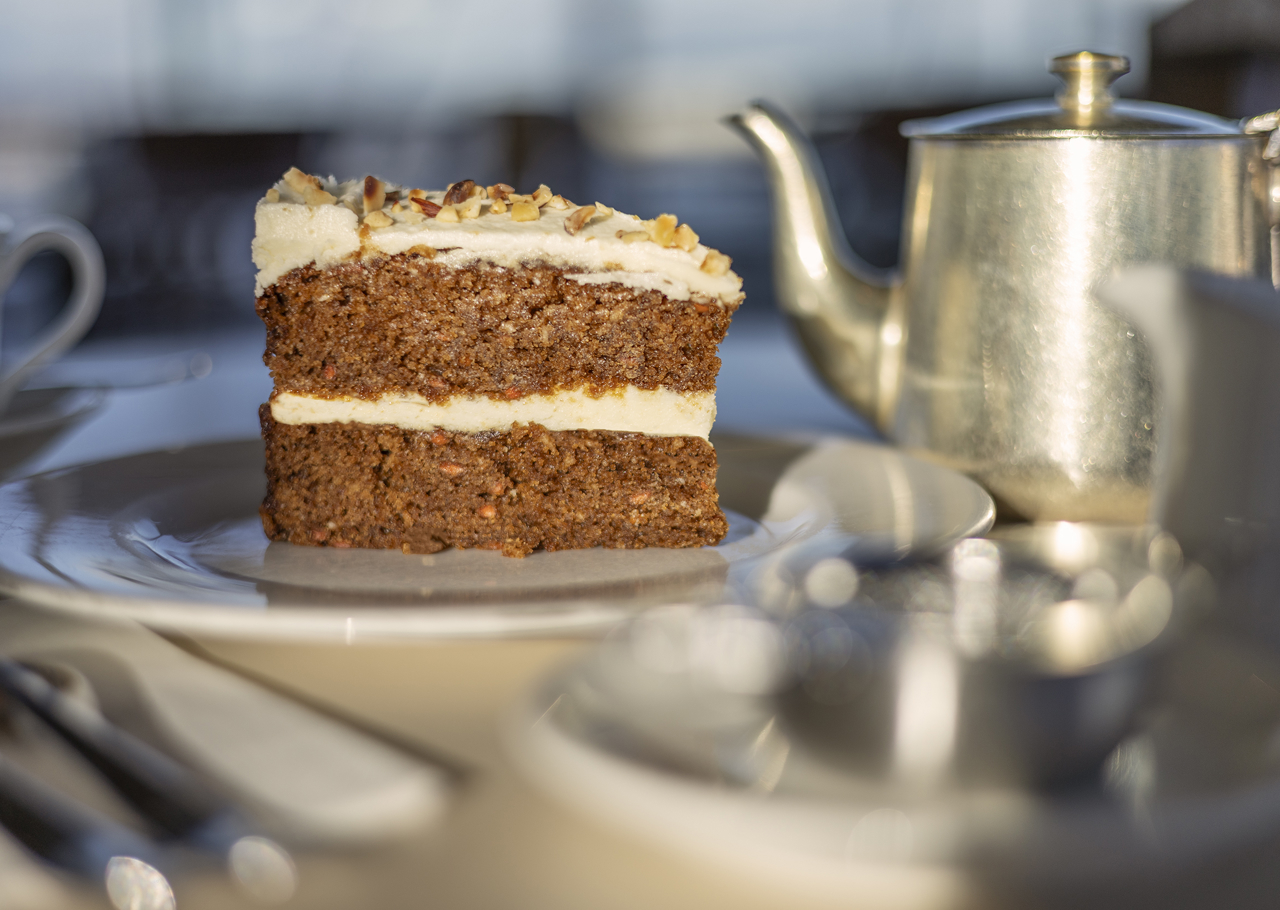A scrumptious slice of gluten-free carrot cake from the Royal Deck Tearoom’s dietary menu – the perfect afternoon treat.