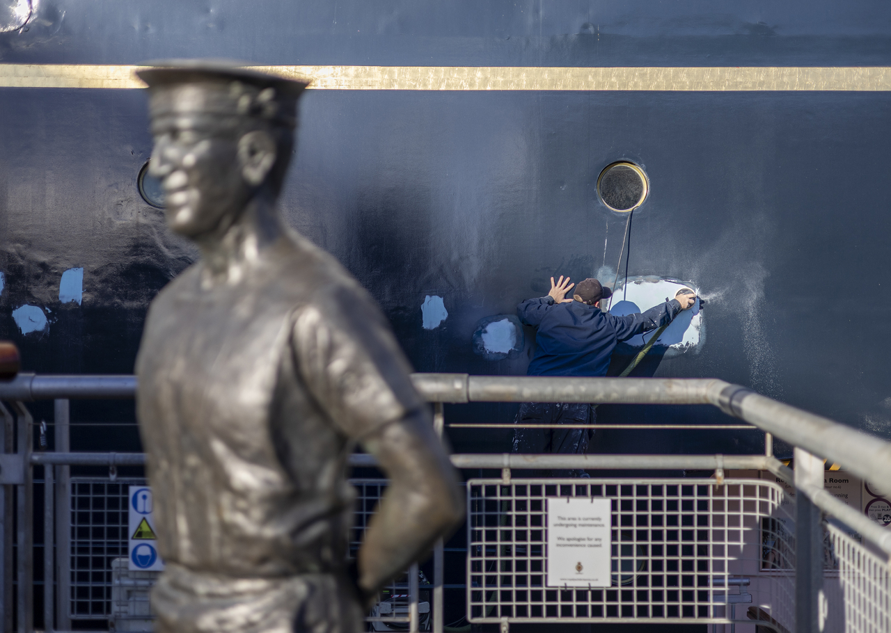 Visitors capturing a photo on the Royal Brow, once the exclusive entrance for the Royal Family aboard The Royal Yacht Britannia.