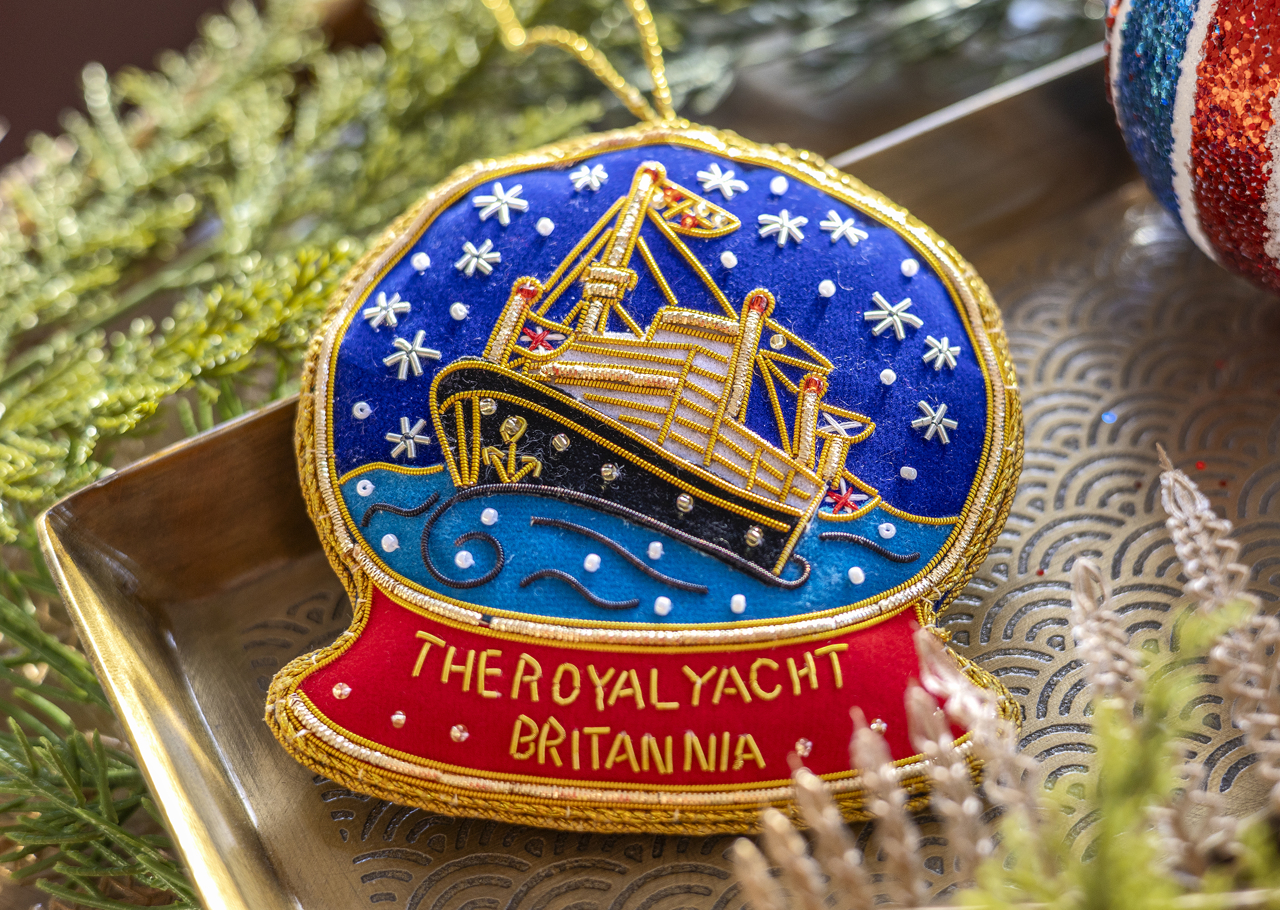 Our shop offers a beautiful range of nautical and Royal-themed Christmas decorations, including this Britannia snow globe hanging ornament.