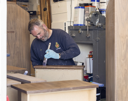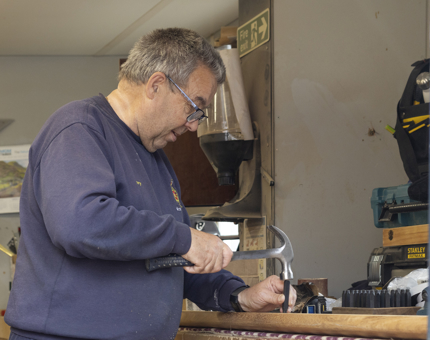 Alastair fitting the outboard motor for the dinghy aboard Royal Racing Yacht Bloodhound, which is part of the Trust's fleet.