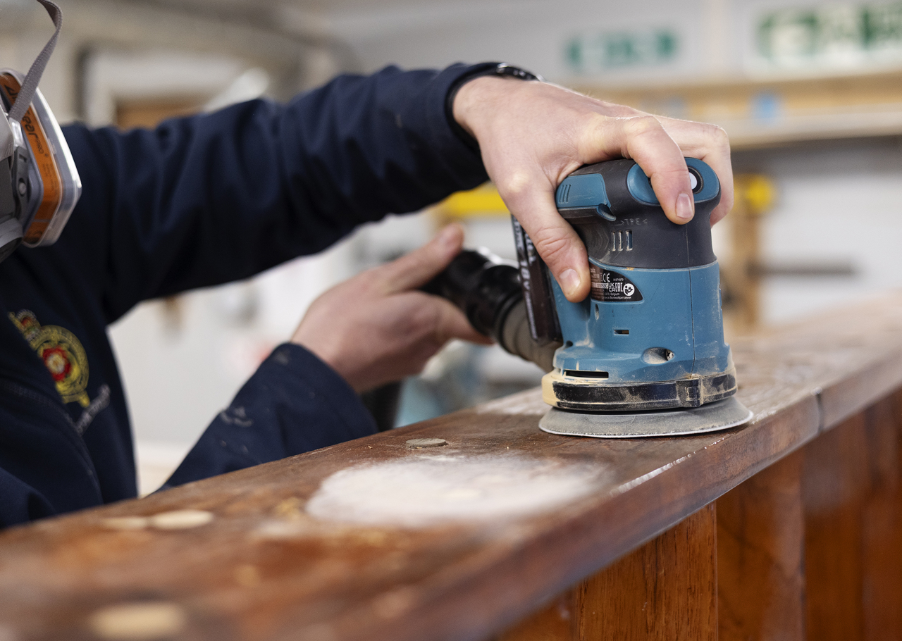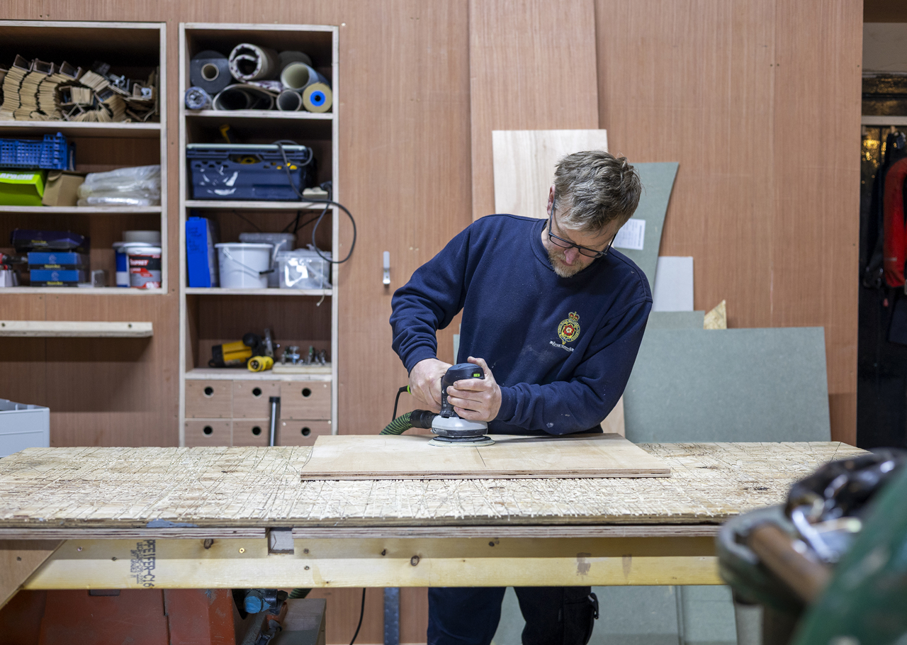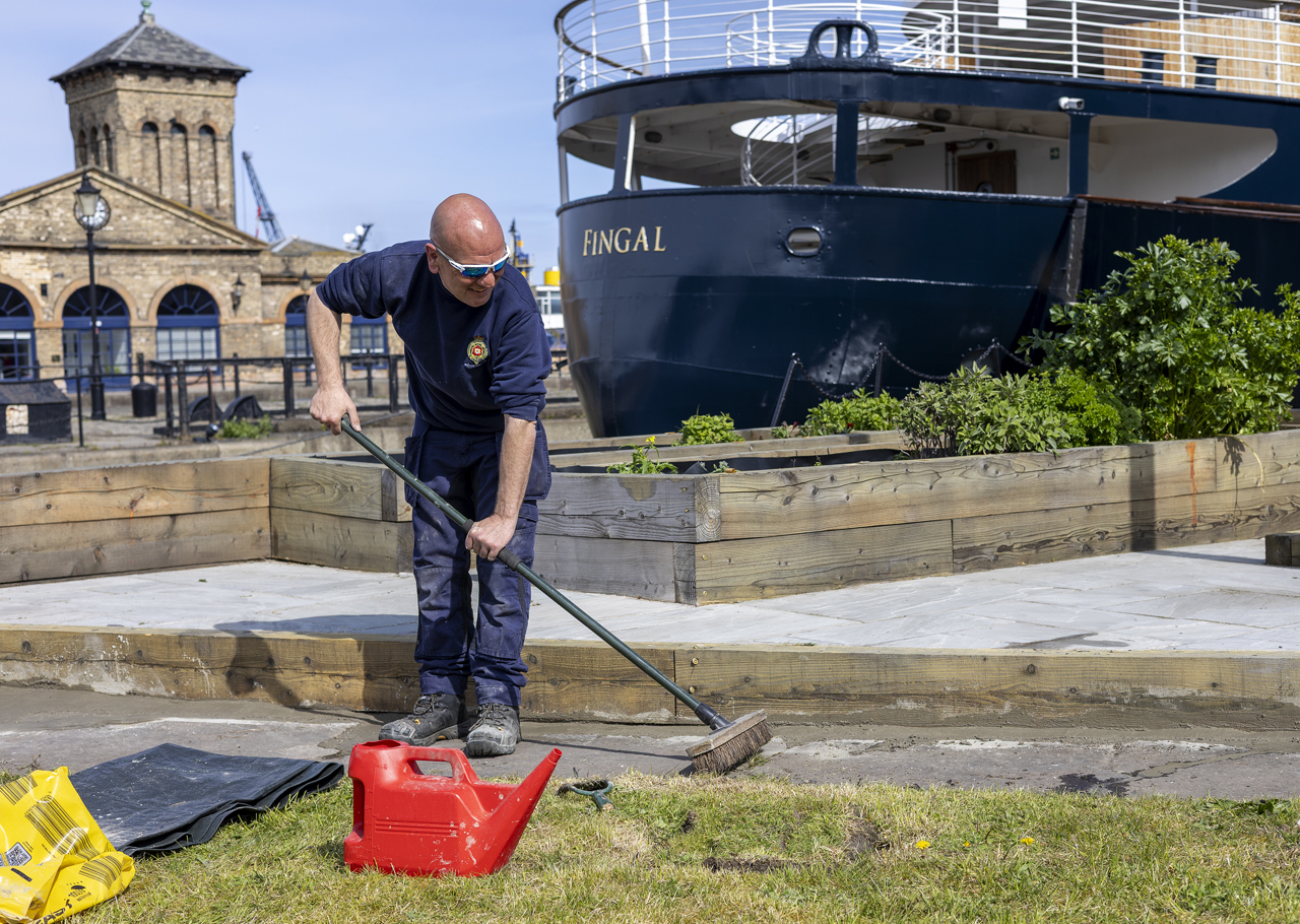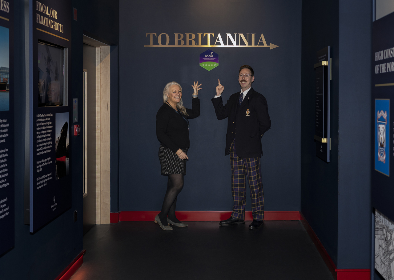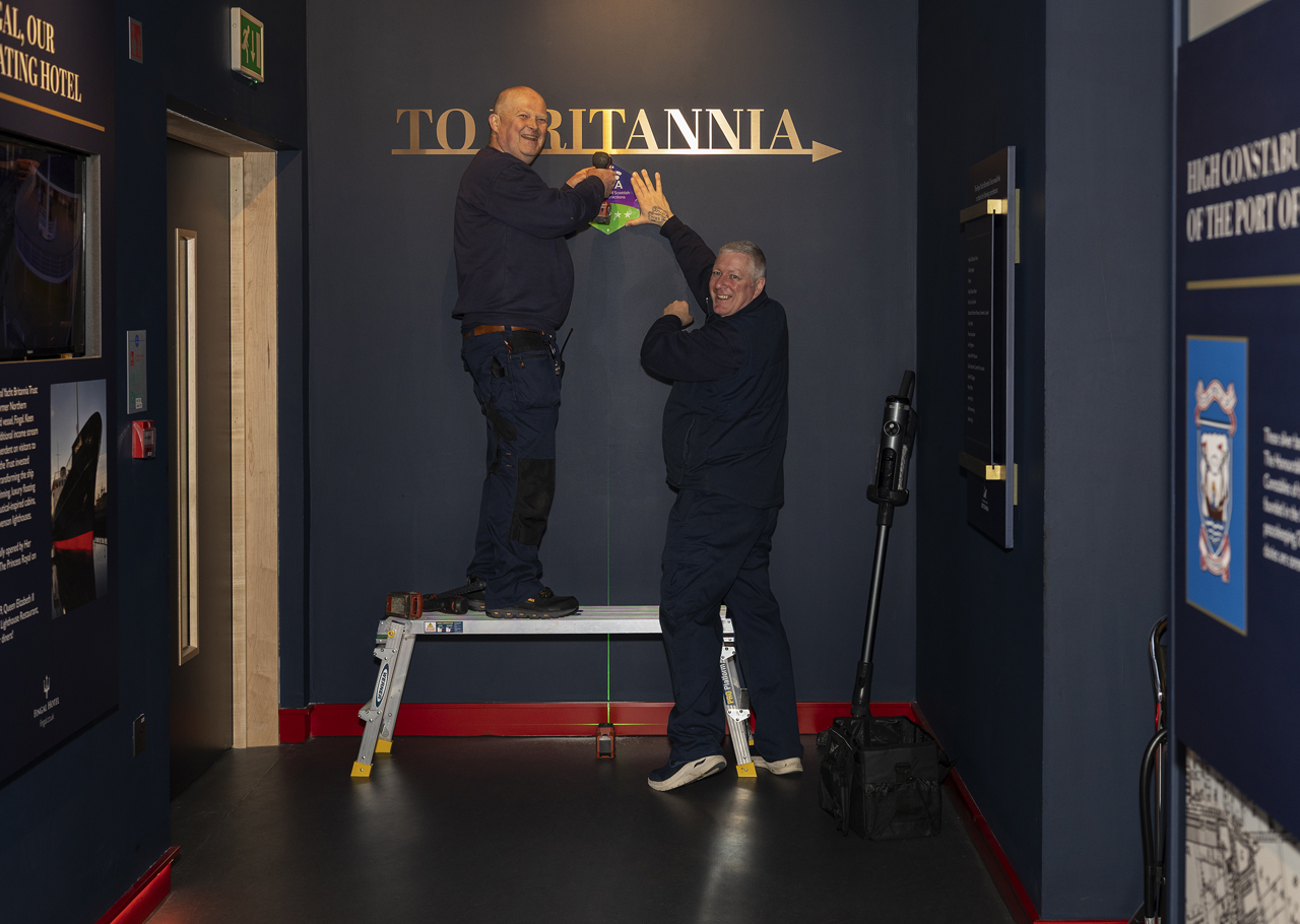Facilities Officers, Mark and Paul, installing a plaque awarded to The Royal Yacht Britannia for achieving five stars under ASVA's Quality Scheme.